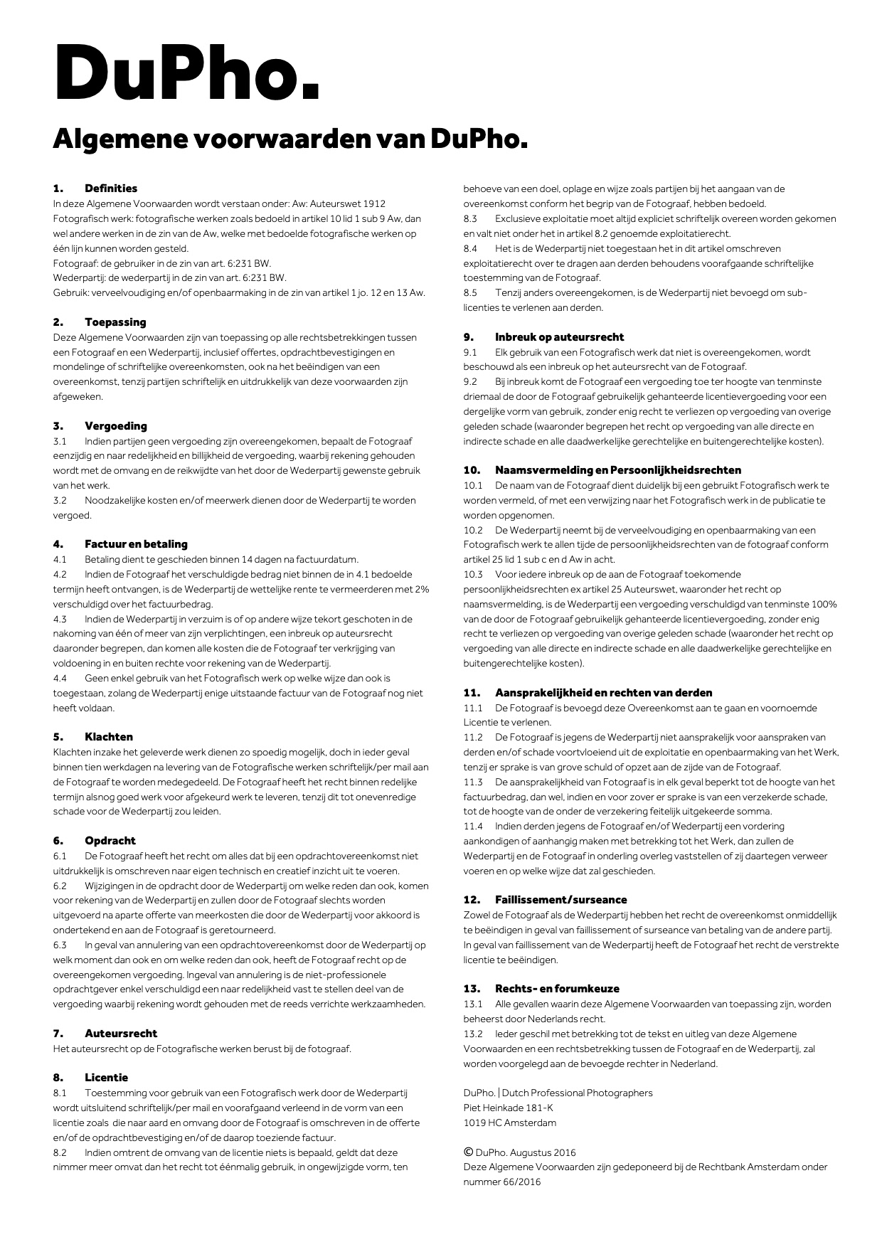 Algemene voorwaarden opgesteld door Dutch Photographers (DuPho) ,