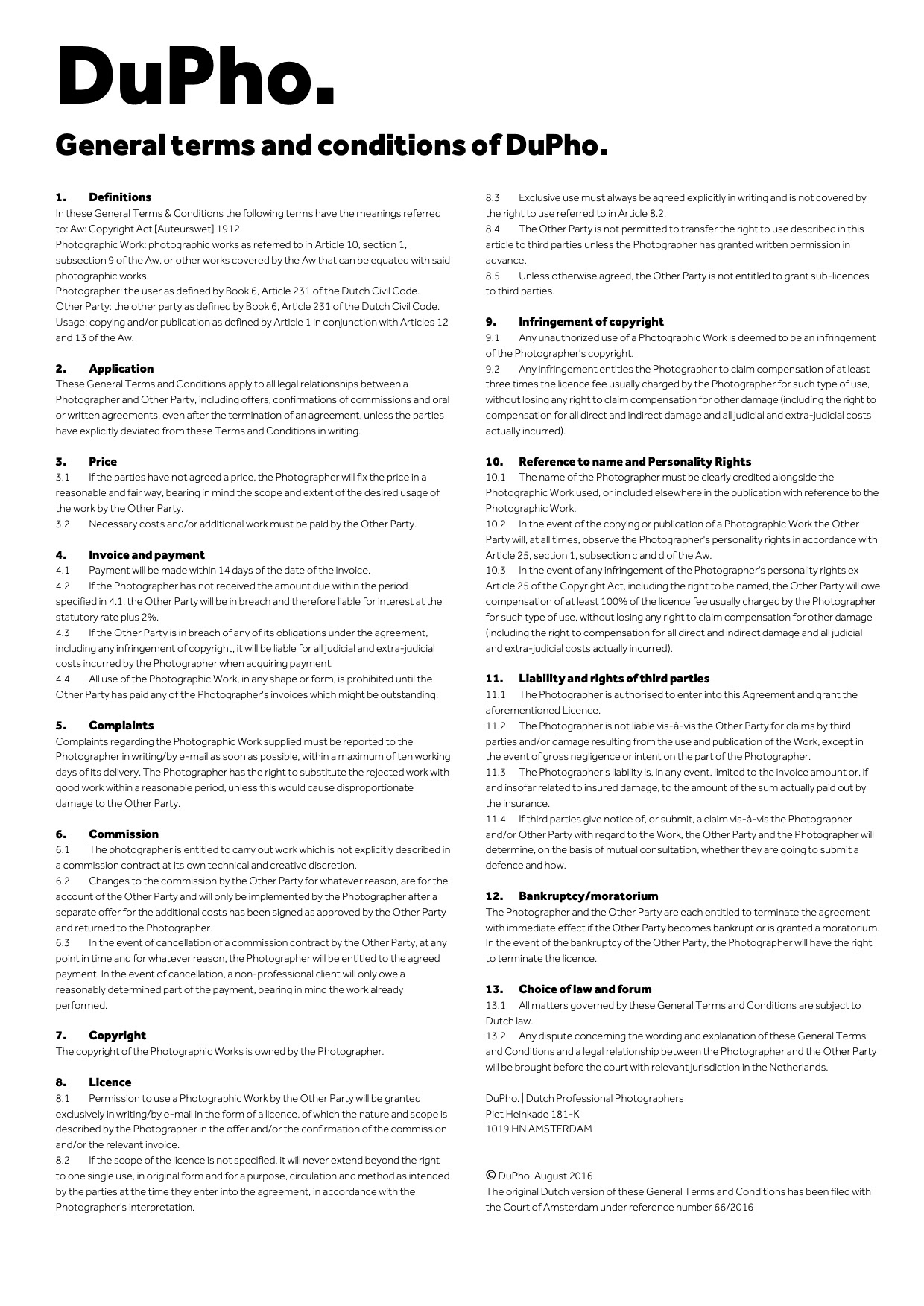 General Terms and Conditions by the Association of Professional Dutch Photographers (DuPho)